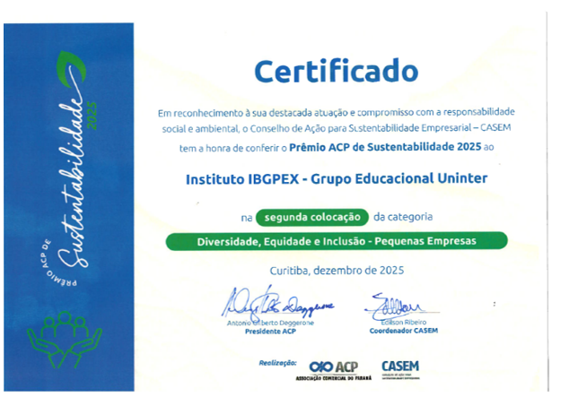 O IBGPEX recebeu novamente o Selo SESI ODS 2025, reconhecimento que valoriza iniciativas alinhadas aos Objetivos de Desenvolvimento Sustentável. A certificação evidencia nosso compromisso com a inclusão, a educação de qualidade e ações que geram transformação real na vida das pessoas, fortalecendo o impacto