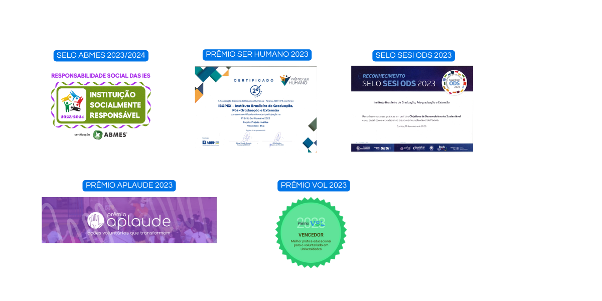 O IBGPEX e o Grupo Educacional Uninter acumulam prêmios e selos que reforçam a credibilidade e a qualidade das ações sociais desenvolvidas ao longo de mais de 20 anos.